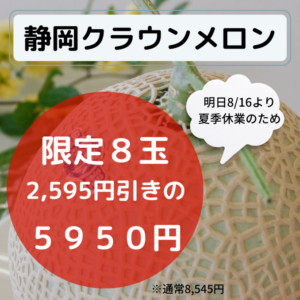 【8玉限定】夏季休業前につきメロン2,595円引き!
