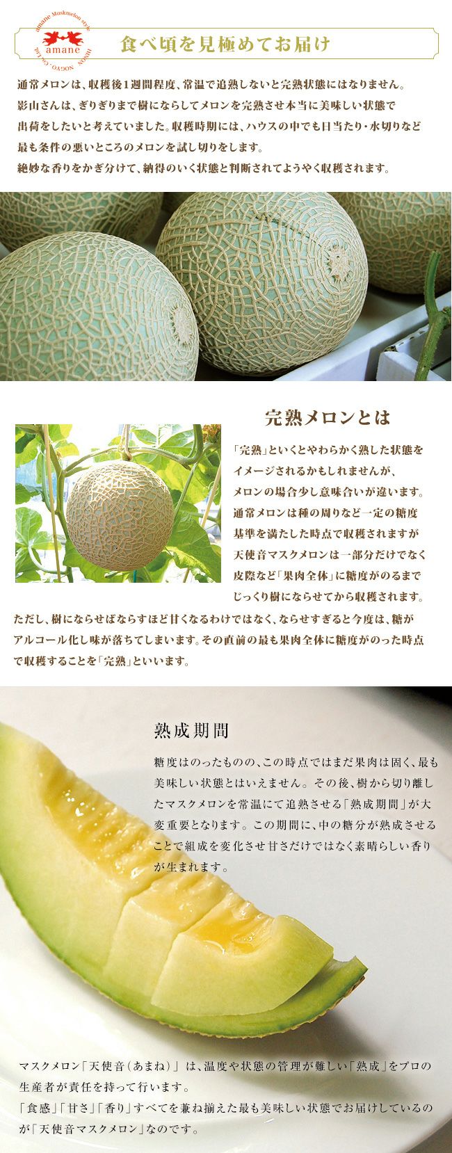 天使音メロンの魅力3 生産者さんが食べ頃を見極めてお届けしています