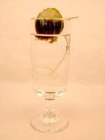 その種をコップの上に置き、ちょうど種の底につくようにお水を入れます。